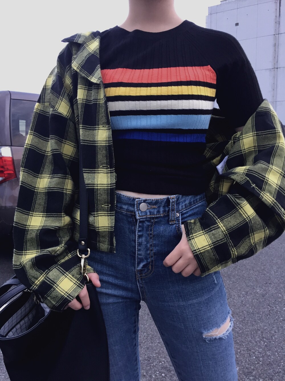10/7 . . . 秋になって皆んなが、落ち着いたカラーを着る中、色色している デニムのサイドカットさいこ〜〜〜