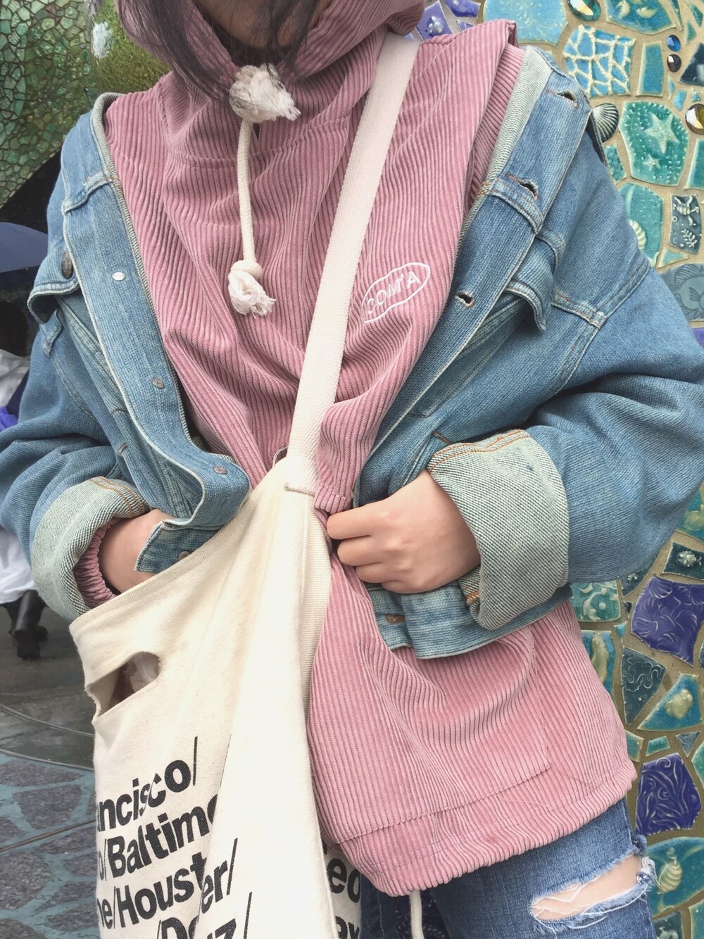 今日は夢の国〜〜海の方に🏖 ピンクパーカーかわ