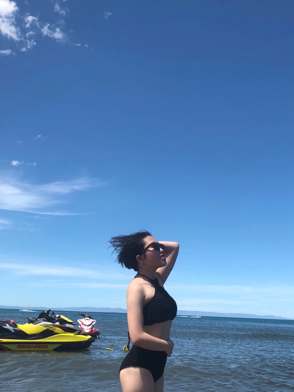 数年ぶりの海水浴 海は数週間ぶり、笑 髪を切って最近は、黒か白の服ばっか着ていて、水着も黒を買いました〜 人生初の水上スキーも体験できて、すごい楽しい2日間でした
