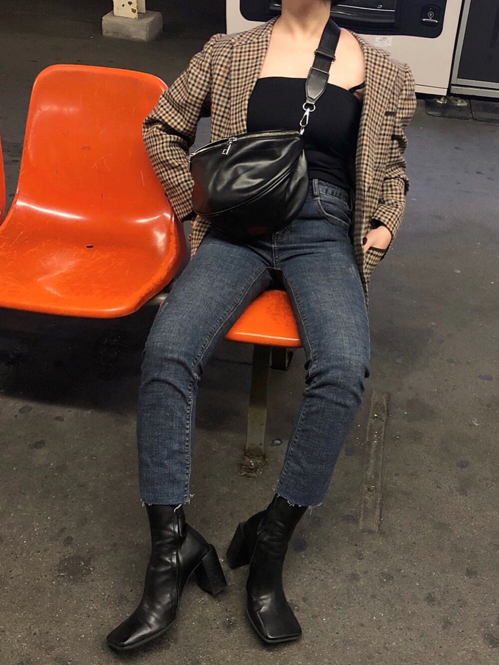 トレンチ着ようと思ってたんだけど、なんかまた、このジャケット着ちゃった ブーツの形が鬼かわいい 1日歩くには拷問みたいなブーツだがな