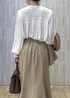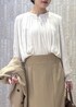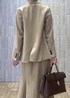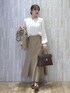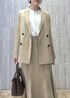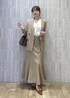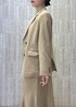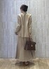 待望の美easyウーリッシュ。 ジャケット、マーメイドスカート着用。 ベージュのワントーンセットアップに、重たくなりすぎないよう、トップスには光沢感のあるブラウスで合わせてみました! 小物は、秋らしいブラウンをプラス◎