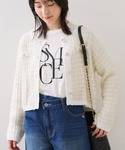 ツイード素材のカーディガンに、きれいめパンツを合わせてコーデにまとまりを◎ 小物は、秋カラーのブラウンで秋らしいお出かけコーデに!