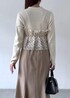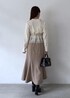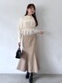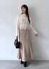 1枚でレイヤード風のビスチェドッキングニットに、 シルエットがきれいな美ウーリッシュマーメイドスカートを合わせて、淡めのカラーでまとめてきれいめだけどカチッとし過ぎない華やかなコーデに◎ 小物で、大人っぽブラックをプラス!