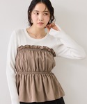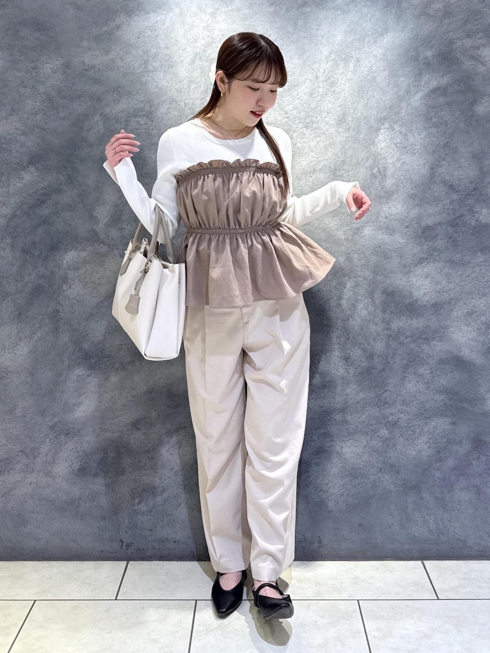 レイヤード風デザインで楽におしゃれ見え! ベージュのワントーンで華やかに◎春のお仕事コーデにもおすすめです!