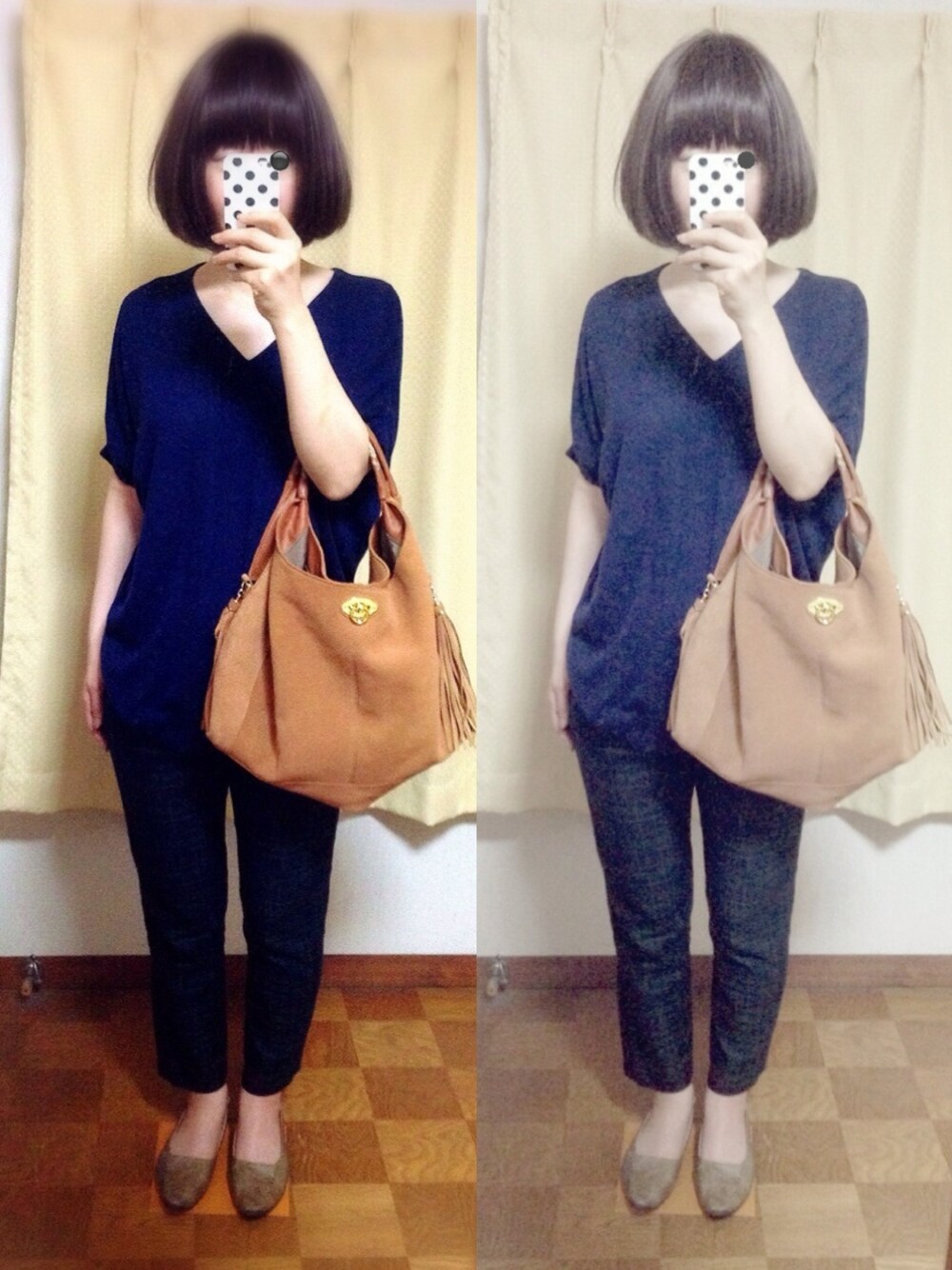 前髪切ってみた♪ 全身くら〜い感じだけど、パンツはブラックウォッチ柄。 これが着られる季節になってきたわ♪♪