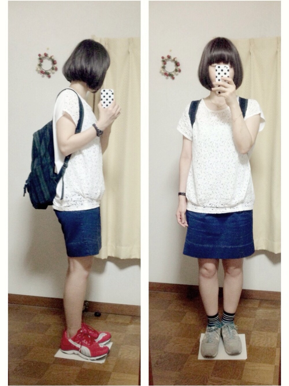 アウトレットに行きましてん♪ いっぱい人がいる所に行くから ちょっとオシャレしようと思って、 秋の装いをしてん♪ でも、暑くて出かける直前に着替えましてん。 結局夏の格好と変わりまてん。(右の方ね) アウトレットでは、ランニングシューズ 買いましてん♪ (左の方ね) 一目惚れしたシューズがあったんだけど、 お値段的に無理…。 で、それより半シーズン前の物で お買い得になってた物を購入。 一緒に行った友達が陸上やってた人で、 このシューズの性能をベタ褒め。 (その人も色違いを買った) 私には善し悪しはよく分かりまてん。 けど、陸上の子のお墨付きもあるし 普段ばきにもいけそうな赤をチョイス☆ でも、目的はね、ウォーキングのモチベーション 上げることだから。 これ履いて、頑張ろうと思いますん♪