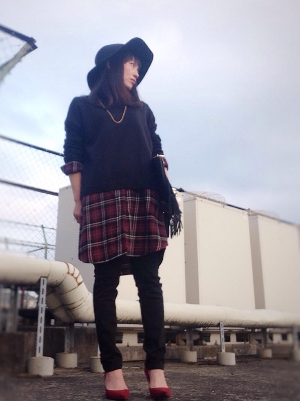 今日もGUアイテム満載です(*≧m≦) GUのツバ広中折れハットに ハイネックニットとシャツワンピのレイヤードスタイルにしました♪ 赤系のパンプスって意外と使えて お気に入りです❤️ 今日も見ていただきありがとうございます«٩(*´ω`*)۶» 皆様良い週末をー♪