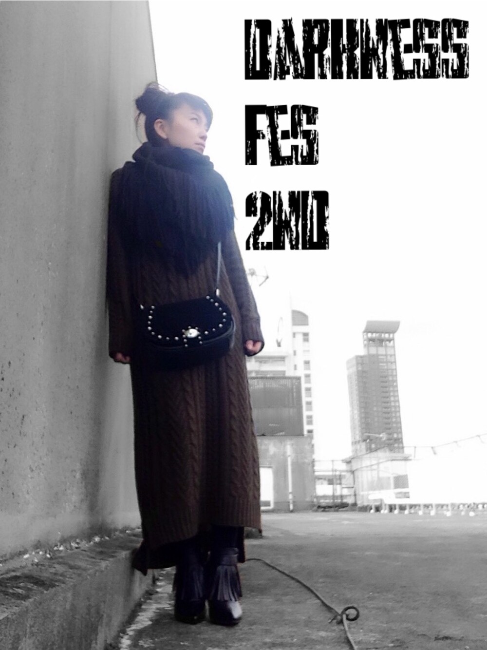 暗黒フェス2nd 始まりましたよ🙌🏼✨ まずはロングニットワンピを ボヘミアン小物でコーデしてみました。 皆様の暗黒コーデ楽しみにしてます❤️