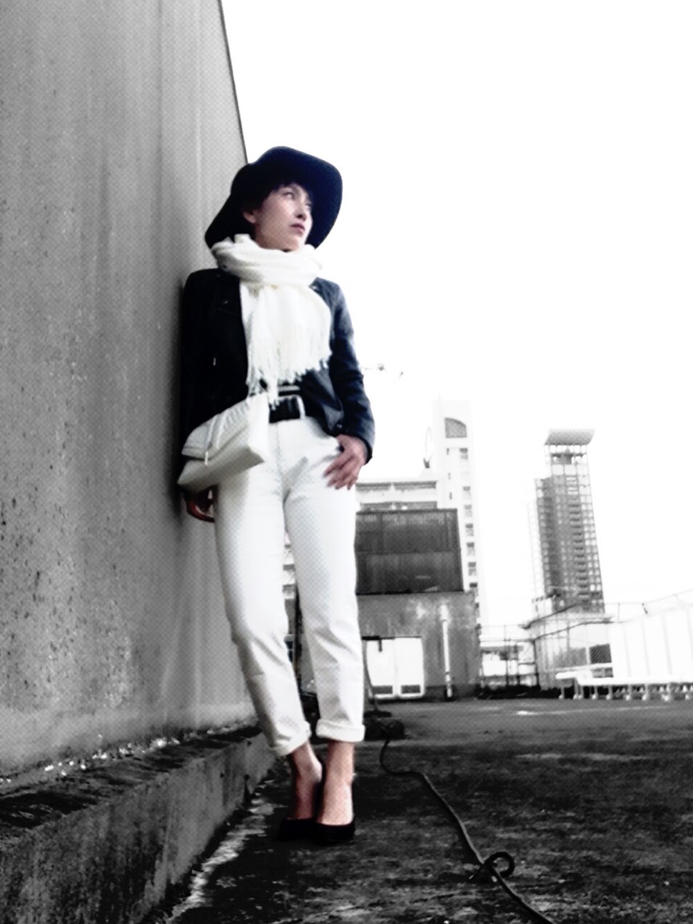 暗黒フェス2nd 2コーデ目はモノトーンで💀👍🏻✨ ボーダーニットに白テーパードパンツ 白ストールで白の分量多目にしました✨ 最近ショルダーバッグに目がない私😍💕✨ 今日も見てくださりありがとうございます♪