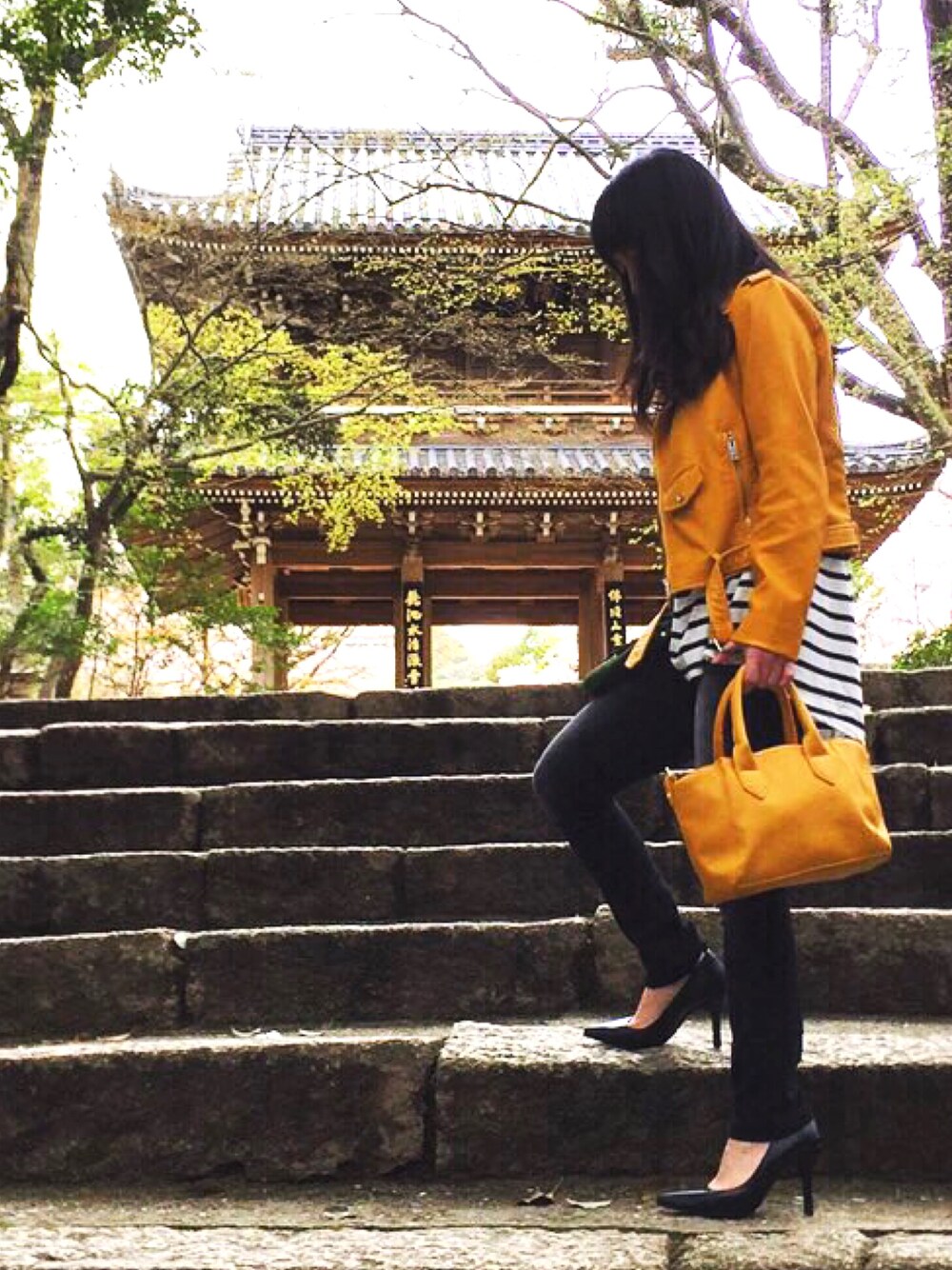 お花見🌸に行って来ましたー♪ ZARAのイエローライダースは 奇跡の袖丈ぴったり✨サイズ👍🏻✨ 最近大好きなカラーでお気に入りです❤️ 久しぶりの投稿✨見てくださってありがとうございます😊🌸✨