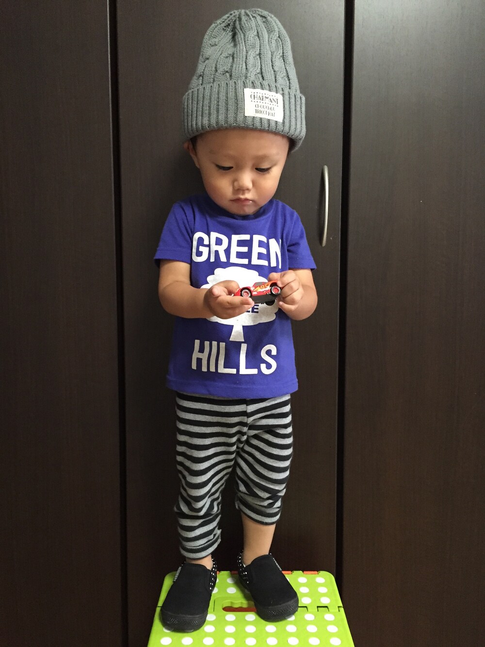 この季節は何を着せたらイイのか迷います◡̈ 走り回って遊んでいるので半袖Tシャツを☆ もう少し気温が下がったら本格的に秋物が着せれるのに…