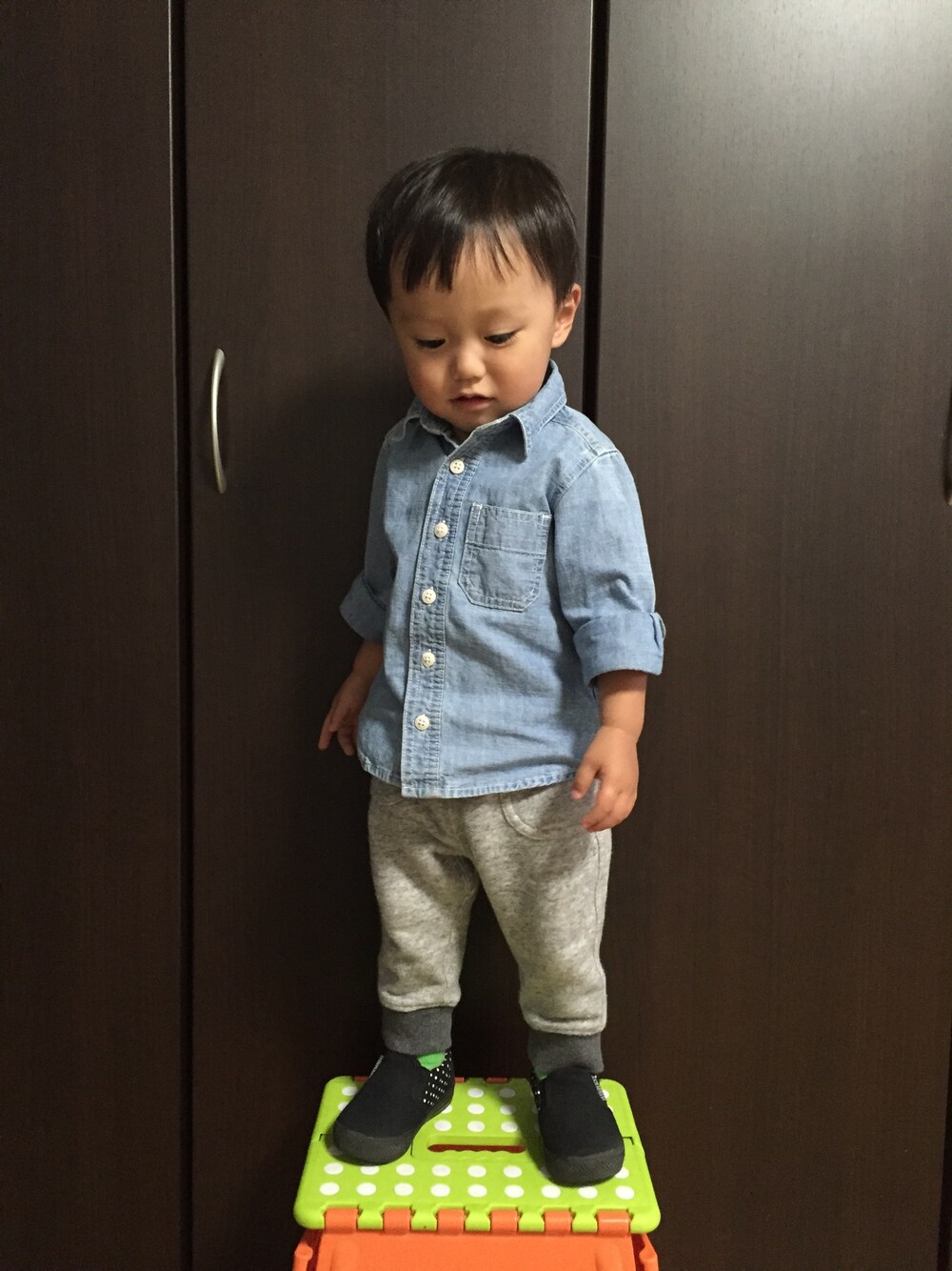 近くの保育園の園庭開放に行ってきました◡̈ 動きやすいスエットパンツでパジャマに見えないようにシャツを合わせました☆