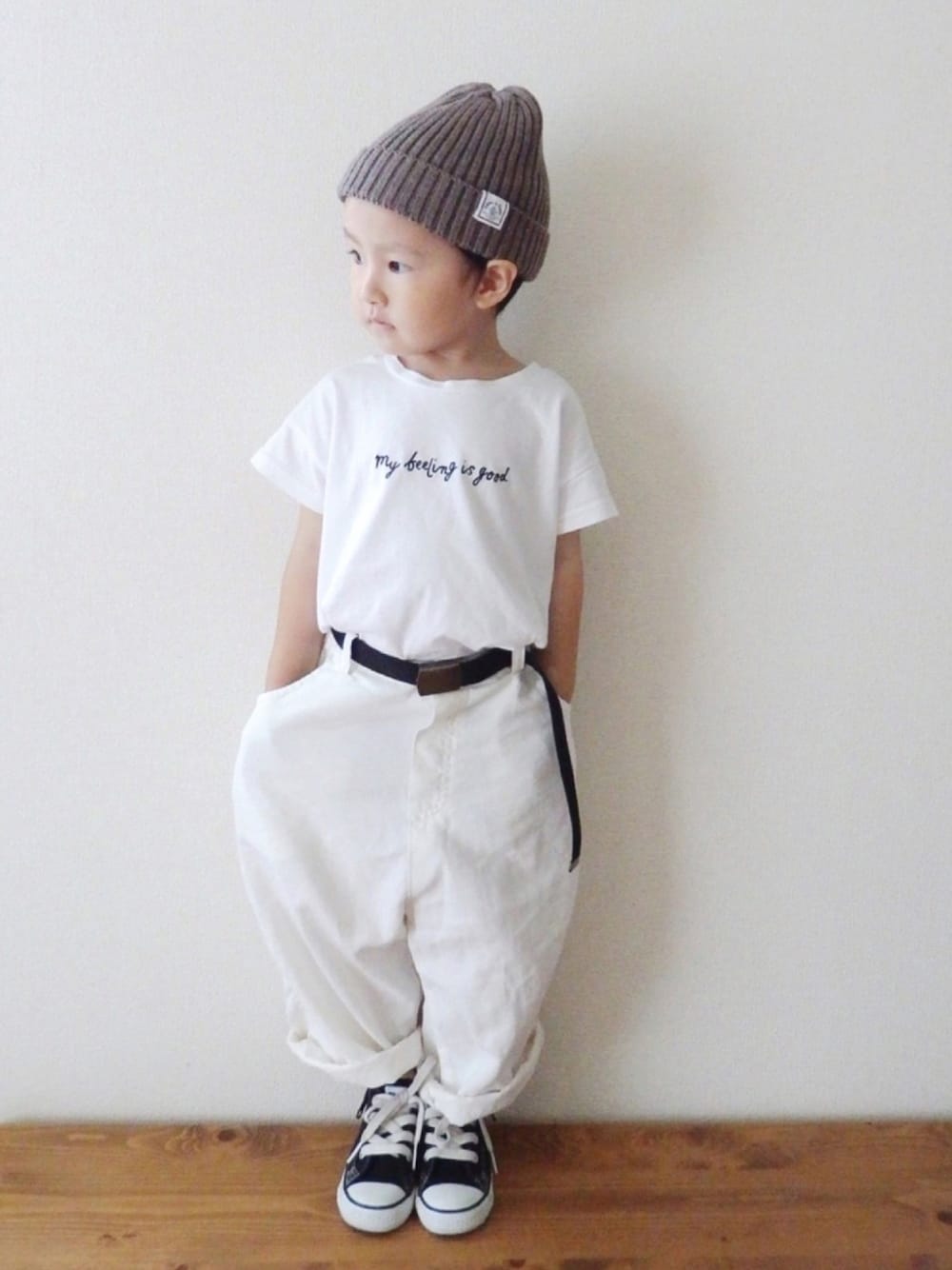 ナチュラルコーデが可愛すぎる癒しのkotoちゃん♡ 5歳のお誕生日おめでとう🎂❁*゚ いつもとっても可愛いナチュラルコーデはもちろん、たまにのカジュアルもほんとすき♡♡♡ ブラウンコンバース持ってないのでベルトも靴の色と合わせて、ニット帽にブラウンを🧶 ロゴTがぱつんぱつんなのは許してね🤫 5歳も幸せ溢れる1年になりますように✩︎⡱