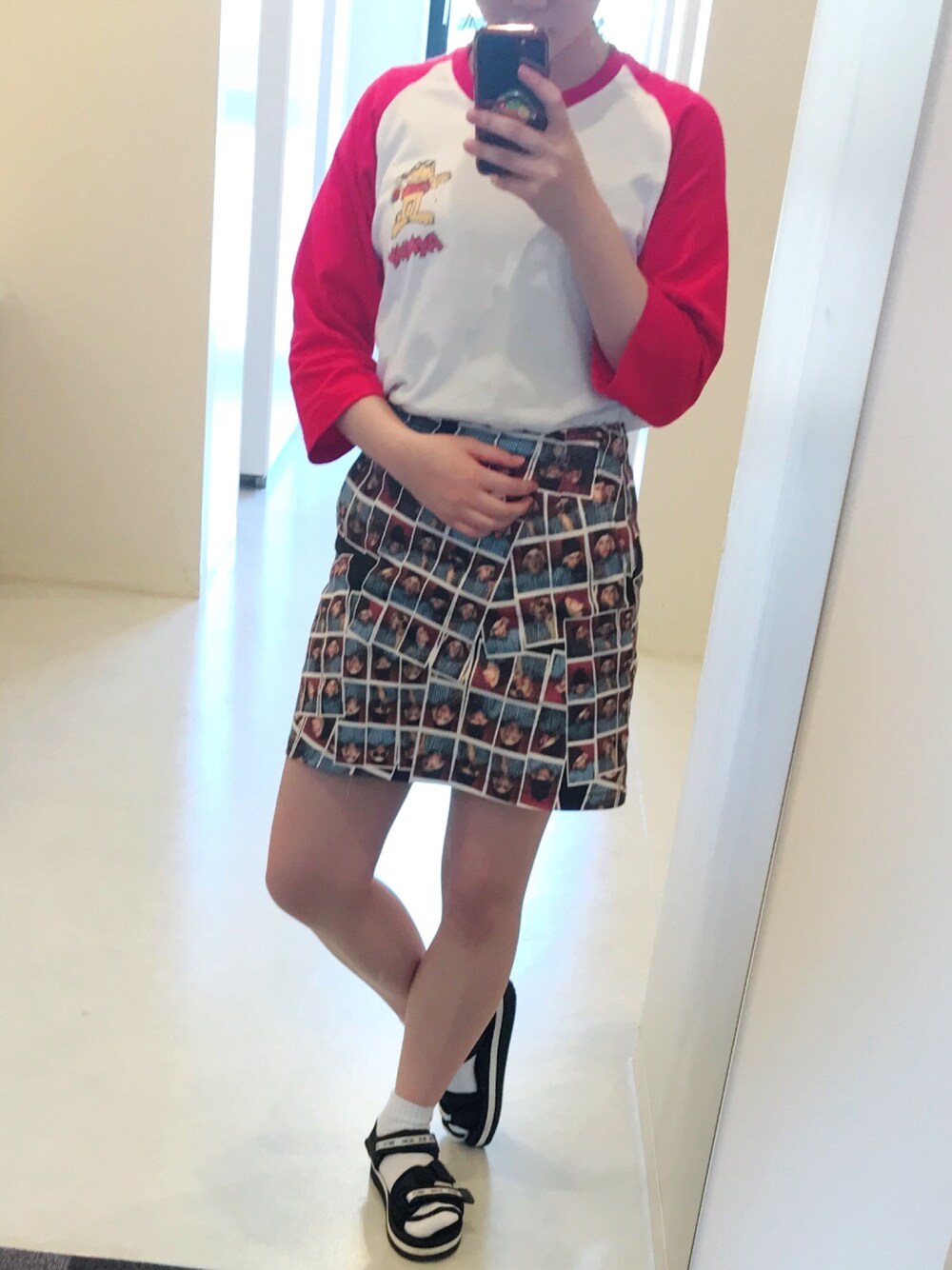 スカートのインパクトが強いので ラフなティシャツをインしてきてみました