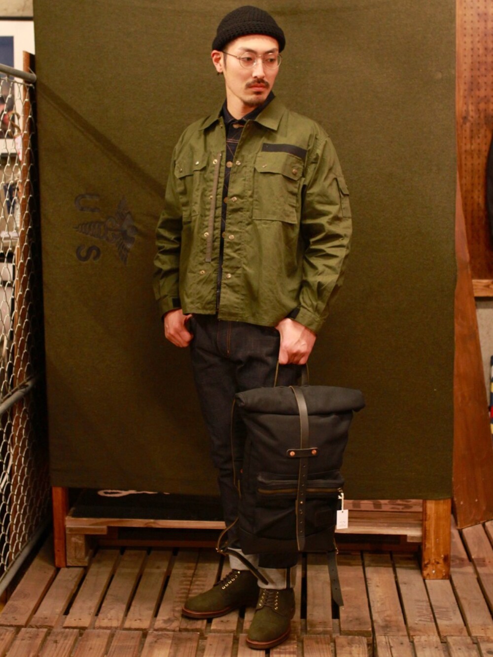 ミリタリーやヴィンテージに多い作務衣タイプのジャケットからインスパイアを得たシャツジャケット”Harrison”が入荷しております。 撥水性と経年変化を楽しめるパラフィンコットン生地を使用。着脱しやすいベルクロ袖、フロントジッパー、利便性の高いポケットとディテールに長けた仕上がり。 着丈は短めながら肩幅、身幅はゆとりがあるのでレイヤードも問題なく、スッキリとした印象になります。 オイルドスウェードのブーツ、デニムセットアップからの羽織でワークxミリタリーのいいとこ取り。上から下まで全てMade in Japanです。 手にしているバッグはHandmade in USA @bradleymountain のThe Biographer。現行モデルとは違いAll Blackの25個限定カラー。二度と生産しないリミテッドになります。 Harrison (SURRREAL) _ oiled Shirt Jacket Color: Khaki, Navy Size: S, M, L Price: 26,000yen+tax Caleb (SURRREAL) _ Denim Jacket Size: S, M, L Price: 24,000yen+tax Trusk (SURRREAL) _ Denim Pants Size: 30, 32, 34 Price: 21,000yen+tax Brian (SURRREAL) _ Wool Knit Beanie Color: Navy, Blk Price: 8,500yen+tax Cap Toe Lace Up Boots / WHEEL ROBE Color: Moss Green Size: US8 / 26cm Price: 48,000yen+tax The Biographer / BRADLEY MOUNTAIN Color: All Black Price: 40,000yen+tax オンライン購入をご希望の方は一度お問い合わせください。