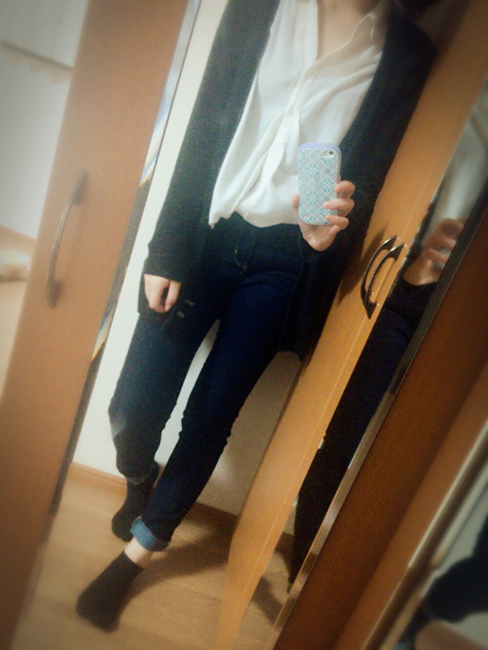 白ブラウス…¥500かな? *ローリーズ デニム…¥990 *GU カーディガン…¥990 *GU チェスター…¥990 *GU 全部、1年まえ以上のitemですw