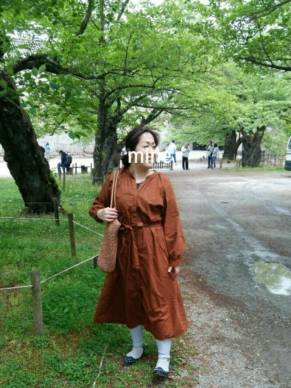 こんにちは✨ 見て下さりありがとうございます☺ 今日は肌寒くガウンワンピ着ました💦 実家の近所にはお城🏯があって 幕末好きな私にはサイコーです🌠 ガウンワンピにグレーのレギンス 今日はパンプスにしました☺ 石垣背景は茶色づくし🐱