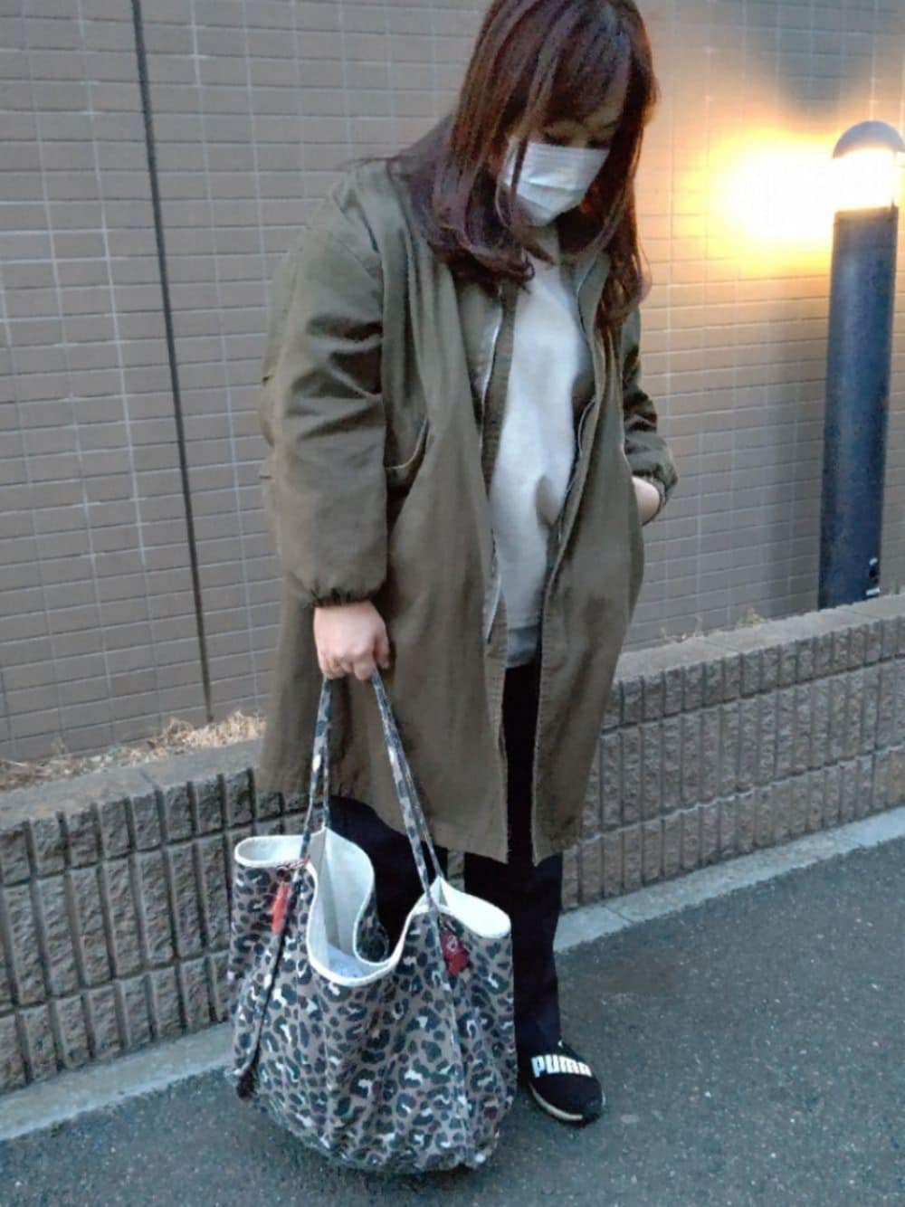 mineのトートバッグ「レオパード柄キャンバス地トートバッグ」を使ったコーディネート