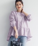 こんにちは👋😃 見て下さりありがとうございます🙋 ラベンダー色のティアードブラウス♥ 色と形にズキュン💘です。 春です🌸 羽織にもなるので着回し◎