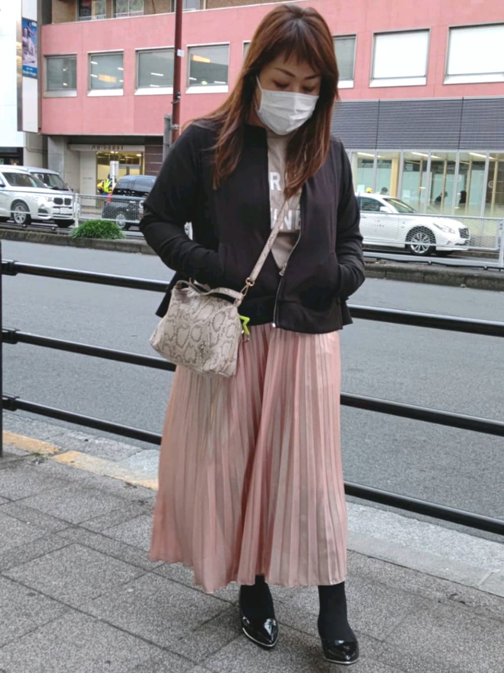こんばんは✨ 見て下さりありがとうございます🙋 ☁️で肌寒かったですが 春の寒さですね🌸 オーロラが混ざったピンクのスカート お気に入りです✨