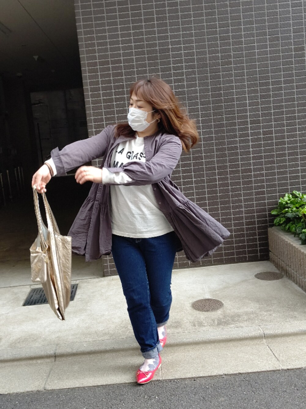 こんにちは👋😃 見て下さりありがとうございます🙋 ブラウスにも羽織りにもなる cocaの優秀なトップス♥ ティアード大好きです✨ 足元は赤で👠