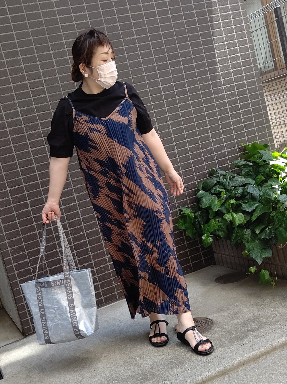 mineのワンピース「プリーツ柄キャミワンピース」を使ったコーディネート