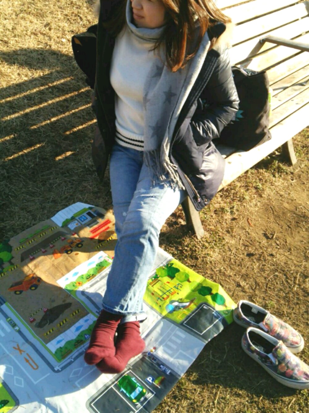 こんばんは🌛 今日は多摩市の桜ヶ丘公園まで遠征💨 ピクニック🚶ピクニック🚶 天気サイコー青空☺ レジャーシートで爆睡しました🎵 GUのキッズセーター☺ 紺に続いて白🐻 かわいい🎵 150一応着れてます👕