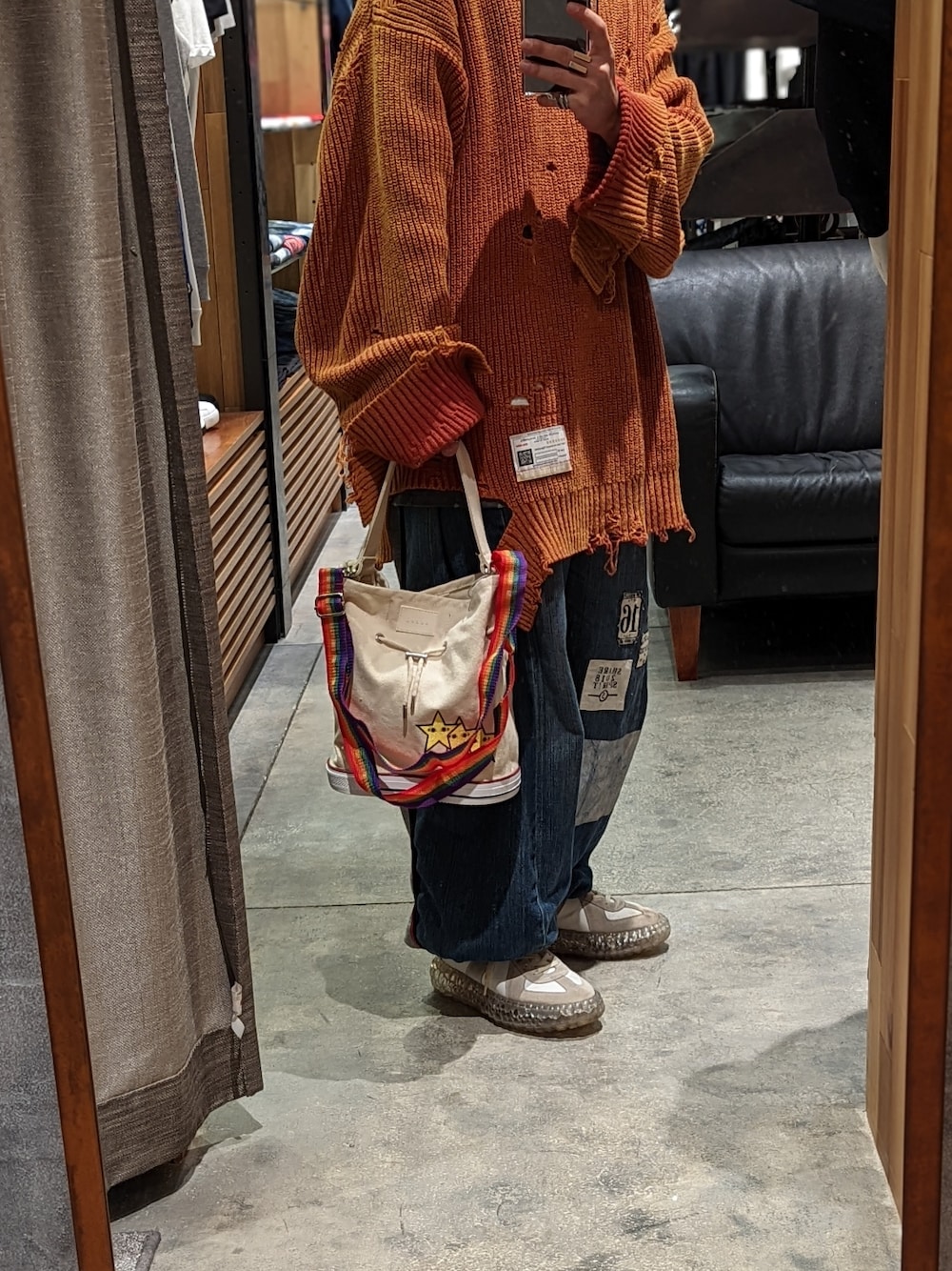 みね(ROYAL FLASH 上野店)のショルダーバッグ「OKERU/オケル/別注2way巾着バッグ/C-2」を使ったコーディネート