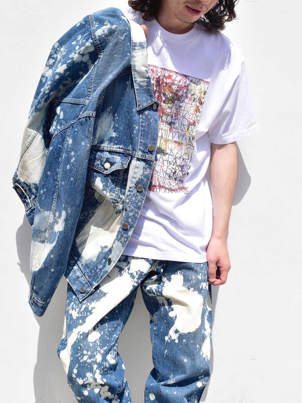 【FEATURED PRODUCTS】 N.LF-GJKT L.Straight 5pocket オールハンドによるアシメントリーブリーチ加工を施したアイテム。 ややゆったりとしたシルエットも魅力的。セットアップは勿論単体でも幅広いスタイリングが可能です。 model 174/60 tops/size2 bottom/size30