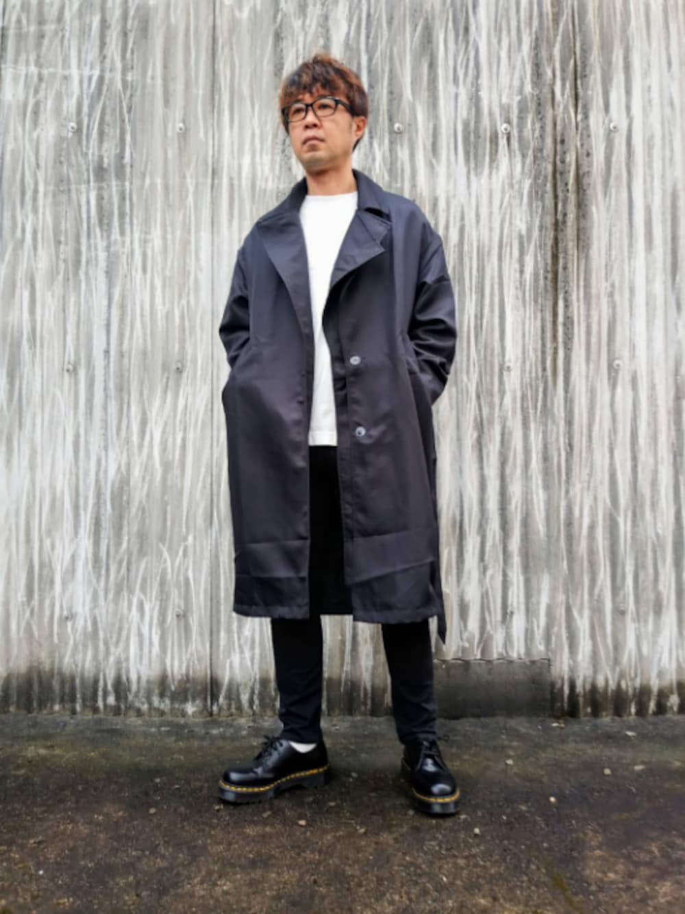 mineのステンカラーコート「オーバーサイズ変形トレンチコート」を使ったコーディネート