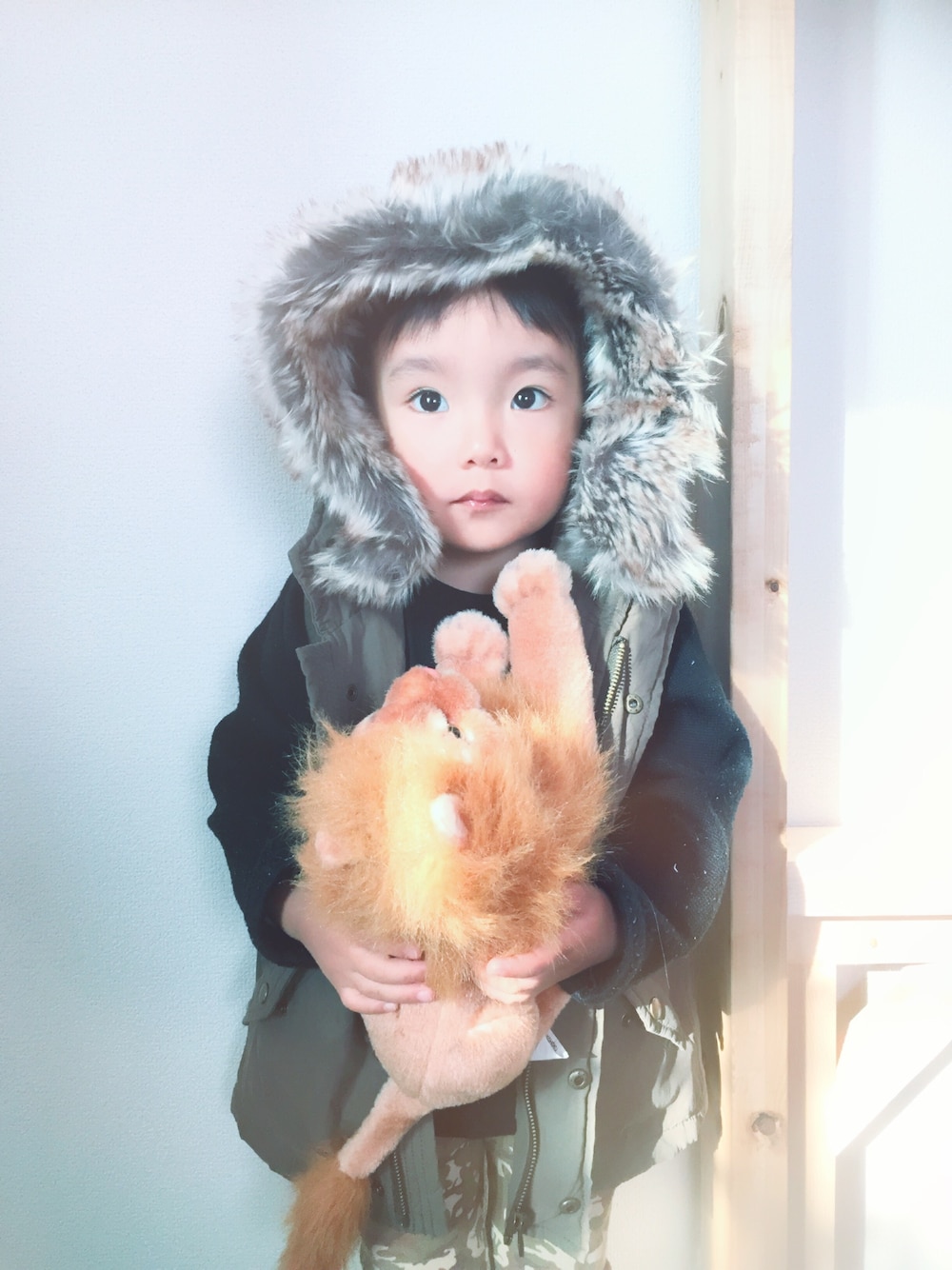 珍しく動かなかったので兄を撮影できました。 ゆきんこコーデ(๑˃̵ᴗ˂̵)