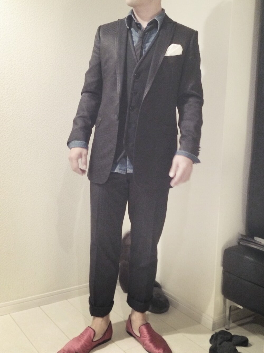 ミネルヴァのスーツベスト「D&G ベロアジレ http://minerva-rp.com/?pid=53387989」を使ったコーディネート