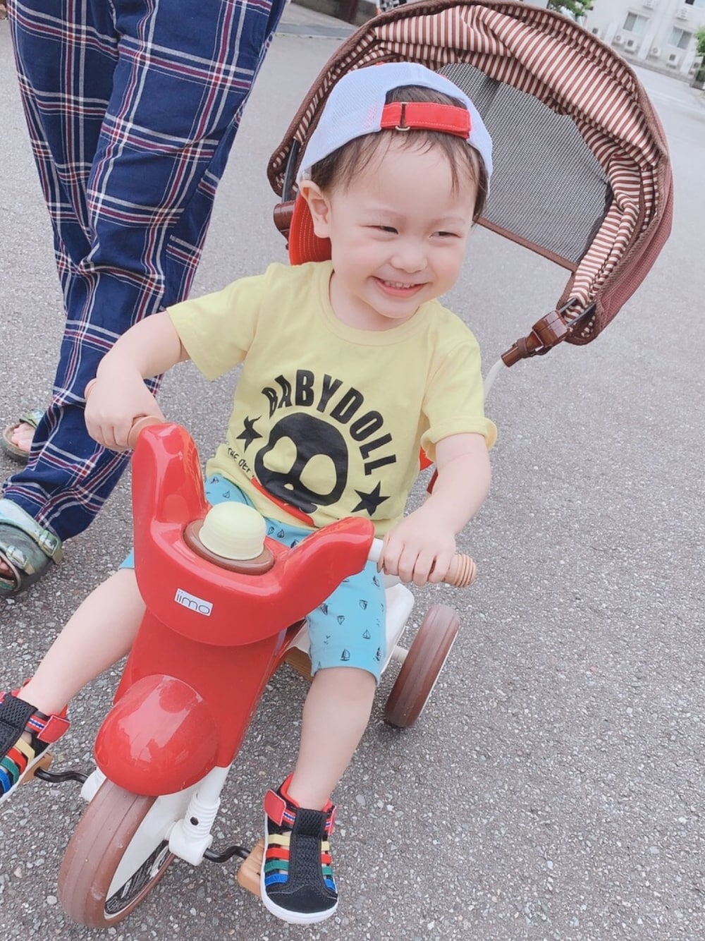 へへへ、やっとペダルに足が届くようになったよ!これで行動範囲拡大さっ!
