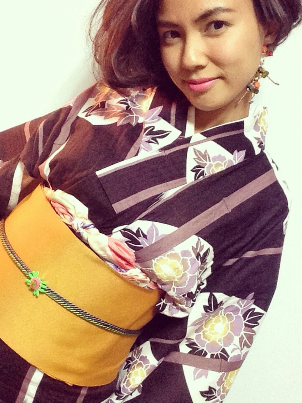 シックな浴衣ですが、小物で遊んでみました。