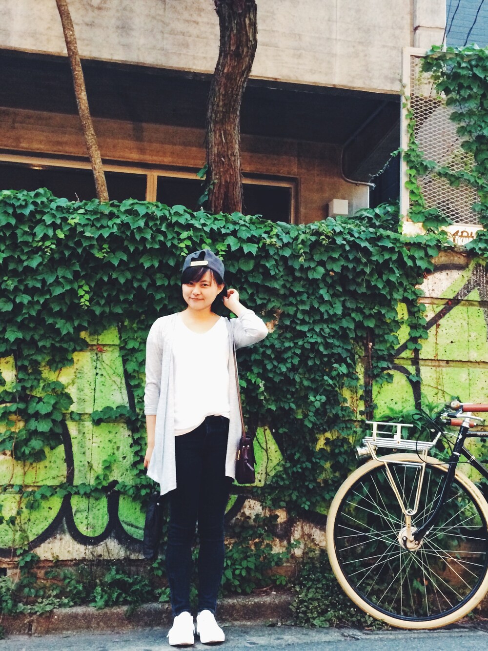 ホワイト系のスニーカーを着用したレディースの春コーディネートの1枚目の写真