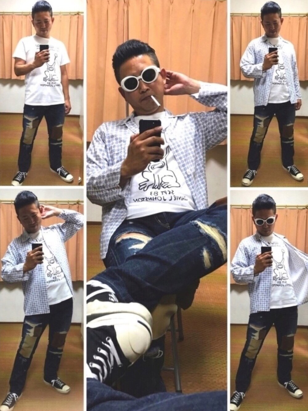 おはようございます☀ いつもご覧頂きありがとうございます😊 片手スマホ自撮り研究会🐸📱最近、白い物を徹底的に白くする事にハマってる7時の男、おたっしです🐷‼️ 潔癖症ではありません(笑) 商品愛かな🤔⁉️Tシャツにもアイロンをかける派です✨ 今日のコーデももちろん僕と同じ双極性障害だったカートコバーン😎‼️パジャマシャツコーデの新作ブギよ🐷👍 今日はリワークのヨガで腰痛めたから座りタバポ🐷🚬でね(笑) 46歳孤独自撮りオヤジはまだ復職を諦めない‼️不眠でクビになんてシャレにならんからね😱 老体にムチ打って不眠改善に努力するブギー🐷💦 昨晩もマインドフルネスやったら少し眠れたブギよ😊 昨日リワーク仲間の松田くんと大好きなストロベリーチーズパンケーキ🥞食べたからかな⁉️ それともこの前ジュンペイ🏉とカラオケ🎤行ってストレス発散できたからかな⁉️ カブトムシ熱唱したから🤔⁉️ 今日も皆様にとって楽しくて幸せな一日でありますように✨ ♫少し背の高い〜♫おたっしでーした🐷💕
