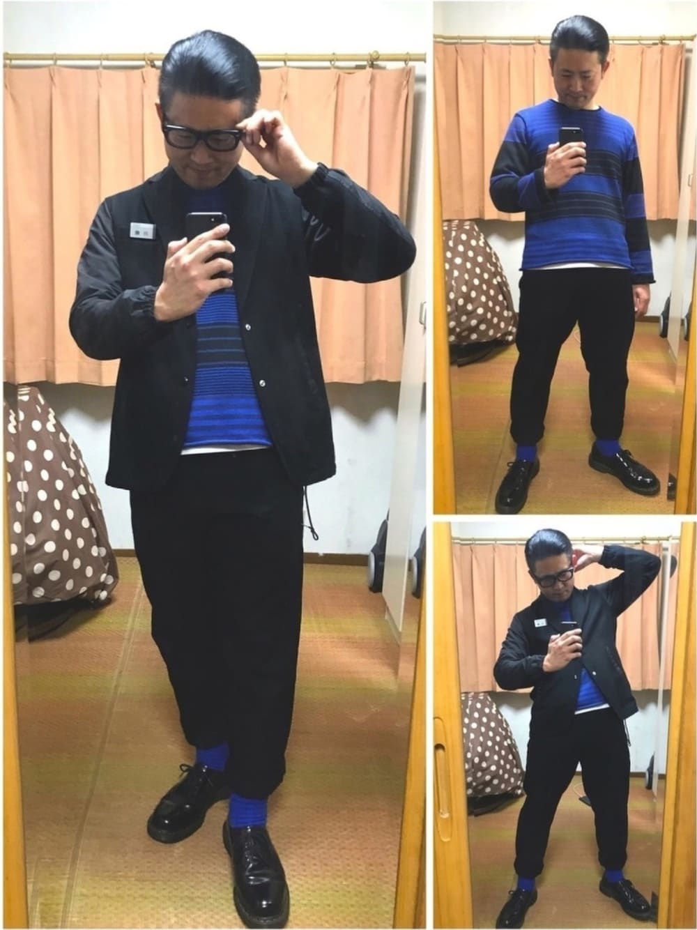 おはようございます☀ いつもご覧頂きありがとうございます😊 片手スマホ自撮り研究会🐸📱ジドリスタのおたっしです🐷 今日は久しぶりに2連投‼️ お昼休みにポチポチ💦もう一つね(笑) 先ずは今日のリアルお仕事コーデブギよ😊✨ 僕の鉄板❗️青黒コーデブギー‼️ ただ今、メルカリも大量出品中‼️ 今日も皆様にとって楽しくて幸せな一日でありますように✨