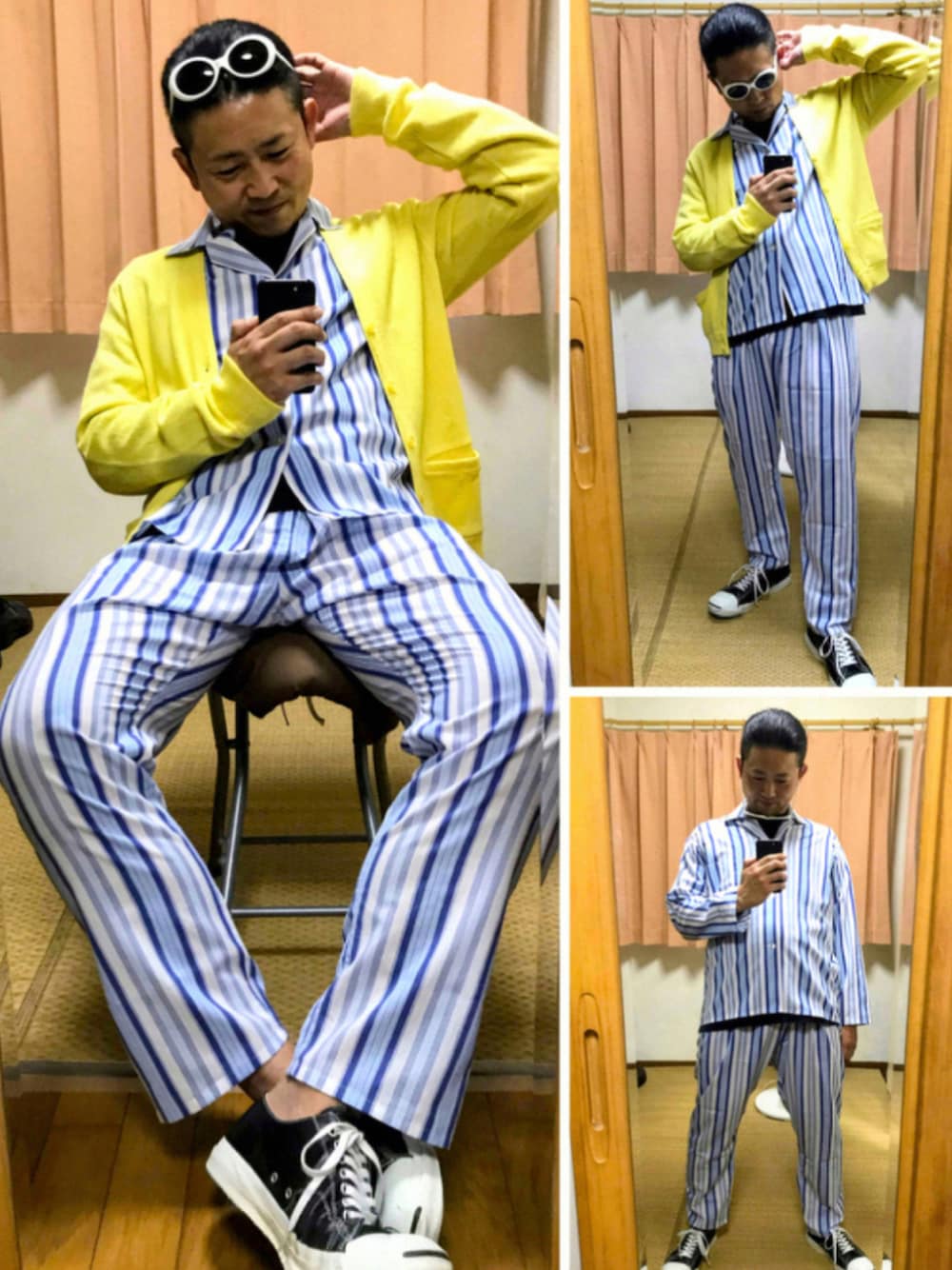おはようございます☂️ いつもご覧頂きありがとうございます😊 デブちんおたっしです🐷💦 寝起きコーデじゃないよ(笑) 連日不眠でろくに寝とらんし😏 コレはね、れっきとしたカートコバーンのパジャマセットアップコーデブギよ😎👍 カートコーデの中でも難易度が高く、今まで何度もチャレンジしてみたけど、僕がやるとただの病人にしか見えないんだよね(笑) カートが着るからカッコいいのも十分理解しとるけど、今回もやっぱ何かしっくりこなくて... 今回でもうこのコーデは断念します😅 さぁ、今日も老体にムチ打って仕事頑張らないと‼️ 今日も皆様にとって楽しくて幸せな一日でありますように✨ おたっしでーした🐷💕