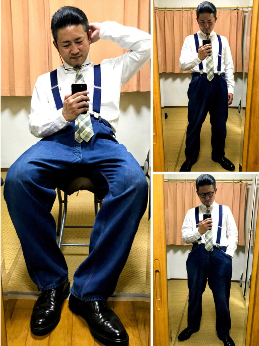 こんにちは✨ 再びおたっしです🐷 今日のお昼はキモおやじコーデは封印して真面目にキレイめカジュアルおたっしコーデブギよ👍 朝のカートで使ったペインターパンツを得意のタイドアップ、サスペンダー吊りコーデで僕らしくハズしてみたブギ〰️ メガネおやじ代表としてメガネも 必殺‼️川畑風メガネずらし🐸‼️でハズしてみました(笑) 服に決まりなんてない。それが楽しいんだよね🤔⁉️ もっと斬新でカッコいいコーデやってみたい‼️ カートみたいに 好きな服を好きなように着る😎みたいなね✨ 昨日の深夜はトレーニングのし過ぎで朝からヘロヘロ😫 老体にムチ打って仕事も頑張らないと‼️ ではこの辺で👋 さよオナラプープー(笑) メルカリも大量出品してるのでヨロシクブギッ🐷👍