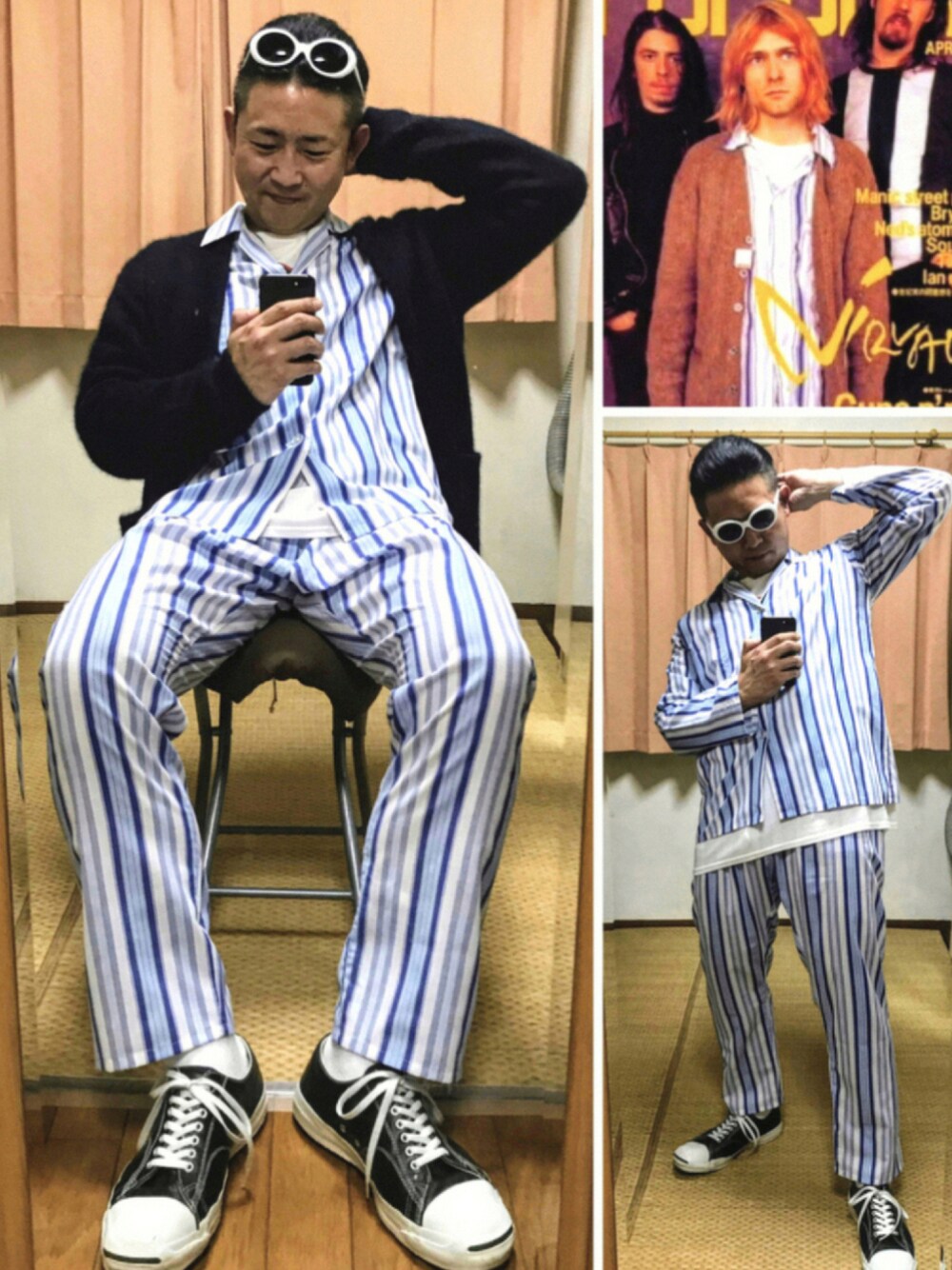 おはようございます☔️ いつもご覧頂きありがとうございます😊 昨晩、こりん星から来たという宇宙人に帰宅途中に襲われる夢を見ました😱💦 なぜかその宇宙人の顔はみんなタモリ😎でした(笑) 久しぶりに3時間も寝れたのに朝からグッタリのおたっしです😣 という事で前置き長くなりましたが、今日はカートのパジャマセットアップコーデブギ〰️‼️ マルチストライプのパジャマセットアップにモヘア風のカーディガンを羽織ったシンプルコーデ✨ 今回はメルカリ出品中のダークネイビーのゆったりカーデで寒色系でまとめ少しクールな印象に😎✨ ただの病人コーデにならないようにサイズ感とか気にして作ってみました✨ 所詮パジャマはパジャマだけどね😏 メルカリも大量に出品してるブギよ🐷‼️ 今日も皆様にとって楽しくて幸せな一日でありますように✨ おたっしでーした🐷💕