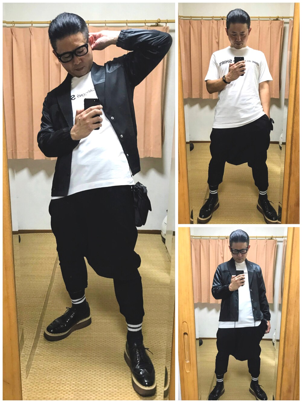 こんばんは✨ いつも沢山の👍、お気に入り、フォロー、フォルダインありがとうございます😊💕 サーバーエラーもなんのその本日3投目‼️ブラックコーデいっちゃうよ😏 昨日のリアルお仕事ブラックコーデブギ〰️👍 久しぶりのペンギンスタイルプープー🐧‼️ 外はもう寒いけど、売場は空調効かなくて汗ビショ💦だから、いつもインナーは半袖Tシャツなんです😅意外と力仕事も多くてね💦 ポイントは腰にぶら下げたsupremeバックとロックテイストなエフェクターの極太黒ブチメガネブギよ✨ バッグは販売プライスと休憩時のタバコ入れ。黒ブチメガネは勿論、遠近両用の老眼使用です😏笑 最近プライスの文字が全然が見えなくてさ😥 加齢だから仕方ないけど.... 今日も皆様一日お疲れ様でした✨明日も皆様にとって楽しくて幸せな一日でありますように✨ さよ〰️ならぁ〰️👋🐷
