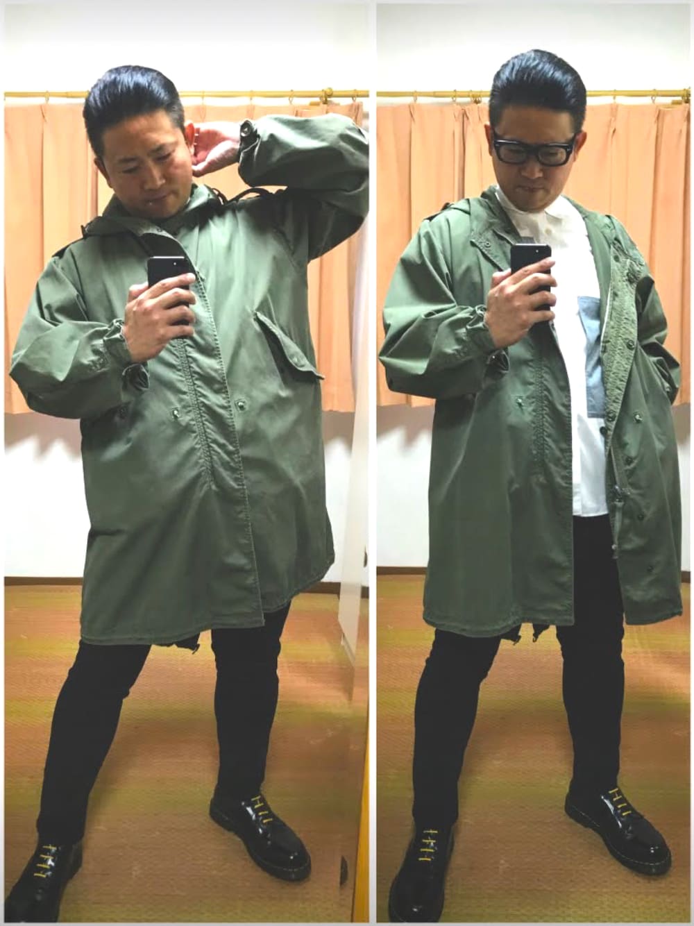 こんにちは✨ お昼のおたっしです🐷 また例のサーバーエラーで手こずっちゃったよ💦 シンプルにお仕事コーデブギー👍 キレイめカジュアルってヤツね😊 モッズコートってモダナイズされた物も多いけど、やっぱ少しヤボったい軍物オリジナルが僕は好き💕 どっちかというと、セカオワのM65よりフード付きのM51の方が好きかも🤔⁉️ 今日は暖かいからライナー、フードファー無しで軽快に✨ スキニーねじ込むのに悪戦苦闘したけどね😅(笑) メルカリも大量出品中ブギよ✨ ではまた👋🐷