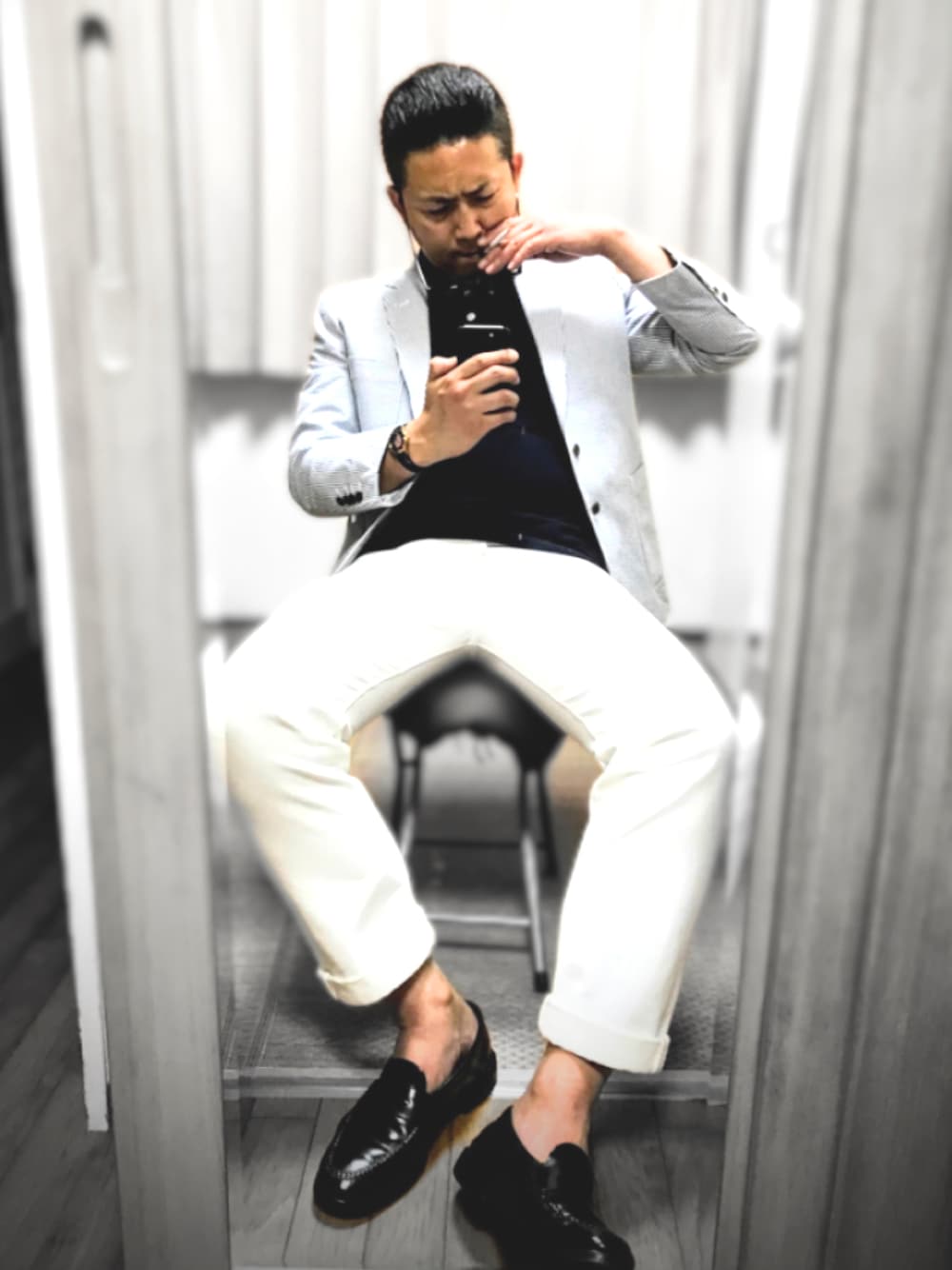 おはようございます☁️ いつもご覧頂きありがとうございます😊 石田ジュンジです。 僕はちゃんと靴下履いてますよ😏 テーマ、ケンさん主催のデニムフェス👖🙋 やっぱりホワイトデニムもいいよね♬🤗 イライラしとるけど、シアサッカーのストライプJKにネイビーポロで爽やかにまとめてみました🙆♂️ 個人的にホワイトデニムはピチパツ💦が好きです笑 今日もコメントは控えめに😒 メルカリも大量出品中‼️ 今日も皆様にとって楽しくて幸せな一日でありますように🐷💕