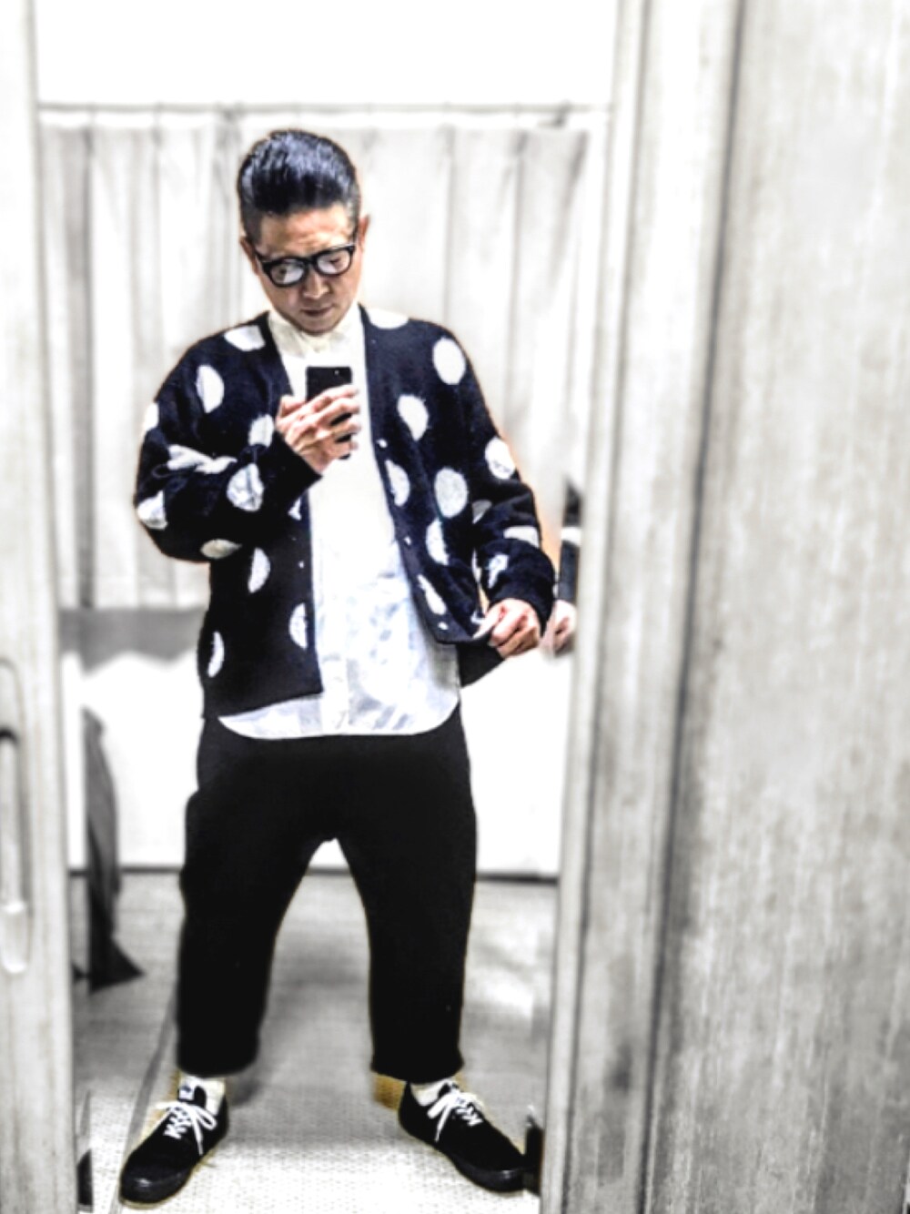 おはようございます☀ いつもご覧頂きありがとうございます😊 大量に溜まった洗濯物のアイロンがけに没頭💦 気づいたらまた朝でした😳 最近またストレスで過食気味💦 ドックも近いし、そろそろ本気で痩せないとね😒 テーマはピックアップタグのビッグシルエット🙋♂️ 昨日に続き、 シュークリームじゃなくて、シュプリームカーディガン😋✨ 大好きな❤️ポルカドットだよ〰️ん♬🤗 オーバーサイズのモヘアカーデに極太ボンタンパンツ、30cmのビッグサイズスニーカーがポイントです🙆♂️ 今日はメガネずらさない😏笑 メルカリも大量出品中‼️ 今日も皆様にとって楽しくて幸せな一日でありますように🐷💕