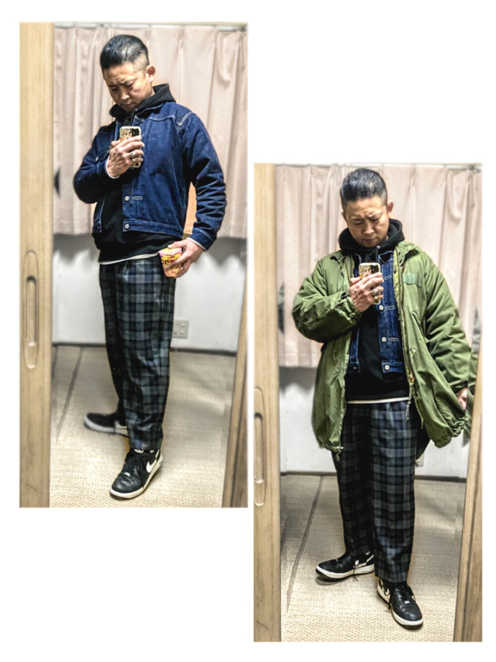おはようございます✨ じゃがりこ🐸の人です😏笑 いつもご覧頂きありがとうございます✨ インフォメの隣から聞こえてくるハイジのテーマ曲がずっと頭から離れん😱 今日は終日仕事が超ハードなんで💦いつもより早い投稿です🙏 テーマはピックアップタグのキルティングジャケット🙋♂️ モッズコート×Gジャン×パーカーの鉄板‼️トリプルレイヤードだよ〰️ん🤗✨ 極太チェックパンツはじめ、コーデ全体のサイズ感がポイントです🙆♂️ メルカリ期間限定値下げは本日最終日‼️ 今日も皆様にとって楽しくて幸せな一日でありますように🐷💕