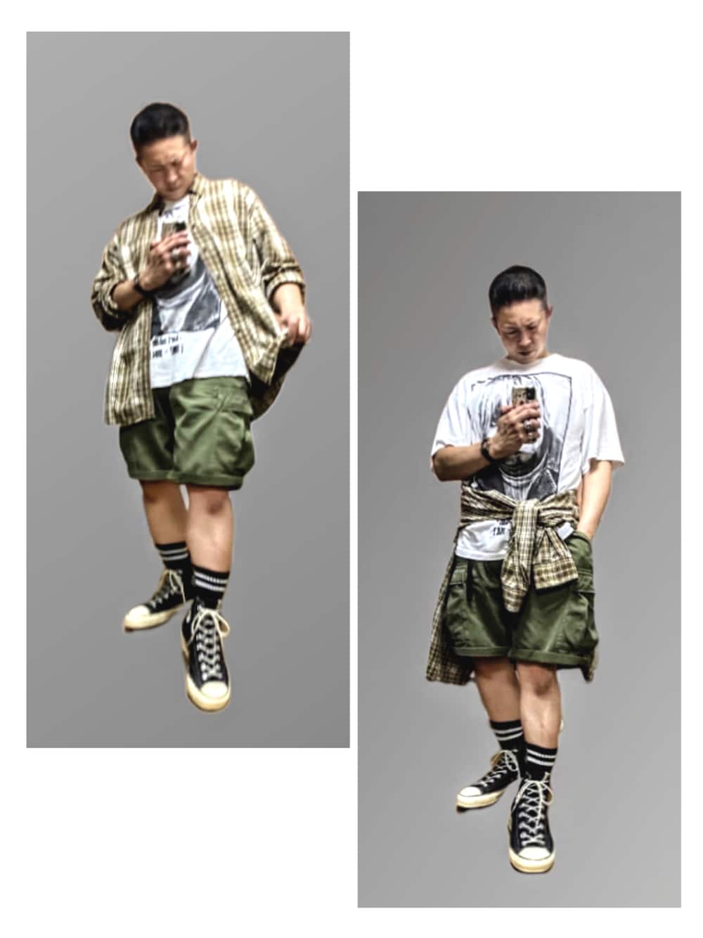 おたっし🐷のシャツ/ブラウス「🔸オールドギャップ チェックシャツ 茶 XL メルカリ出品中🙋♂️」を使ったコーディネート