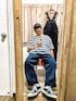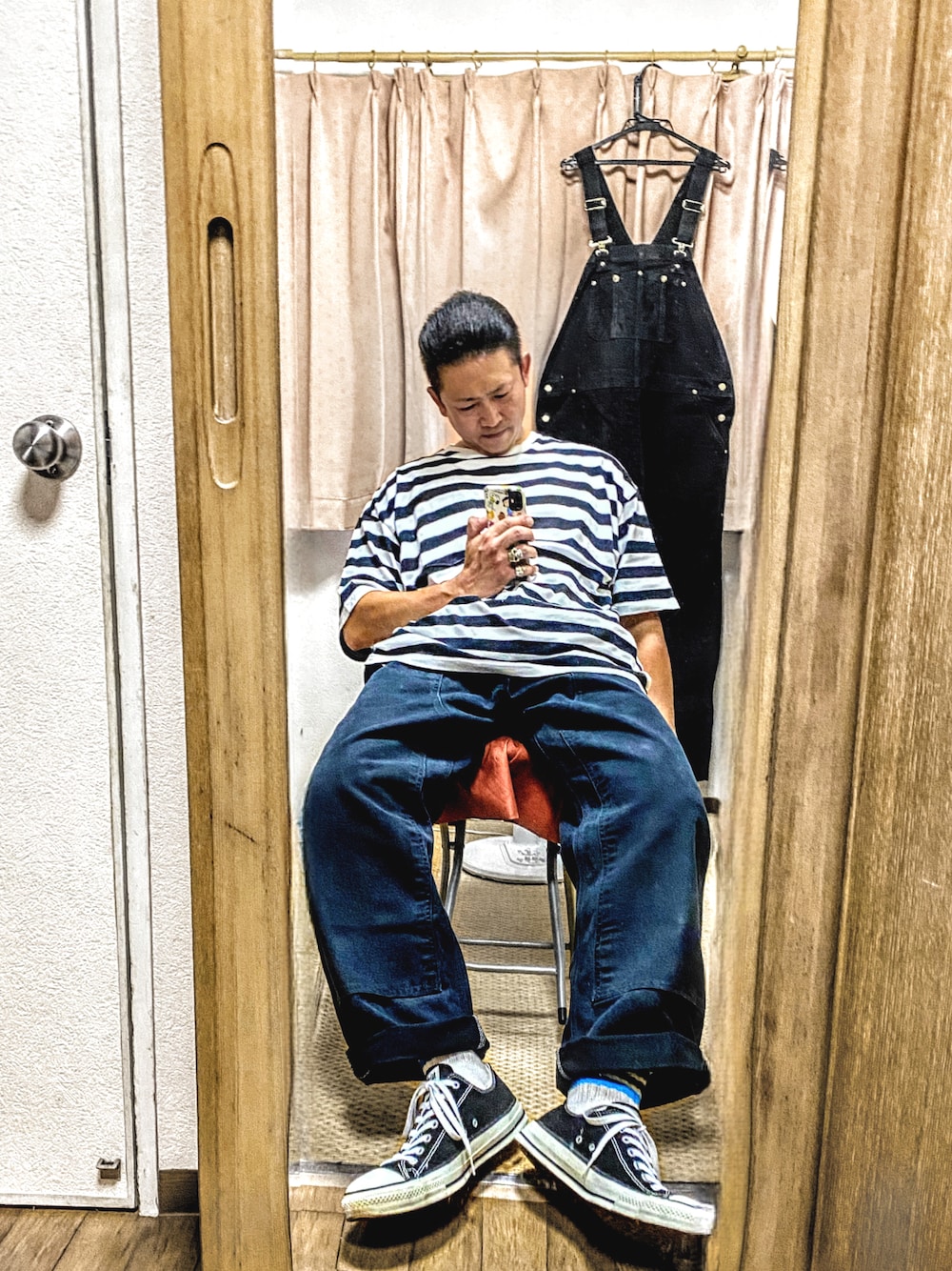こんばんは✨ いつもご覧頂きありがとうございます😊 なんか気分上がんなくてこんな時間に🙏 明日の商談の準備もしないといけないし💦 シンプルだけどこの合わせやっぱ好きカモ🦆 グラフペーパーのボーダービッグTに超ビッグサイズの極太ブラックダブルニー🙋♂️ サスペンダーもポイントです🙆♂️ メルカリも大量出品中 今夜は走らずにあんバター🍞食べまくろうと思います😏 明日も皆様にとって楽しくて幸せな一日でありますように🐷💕