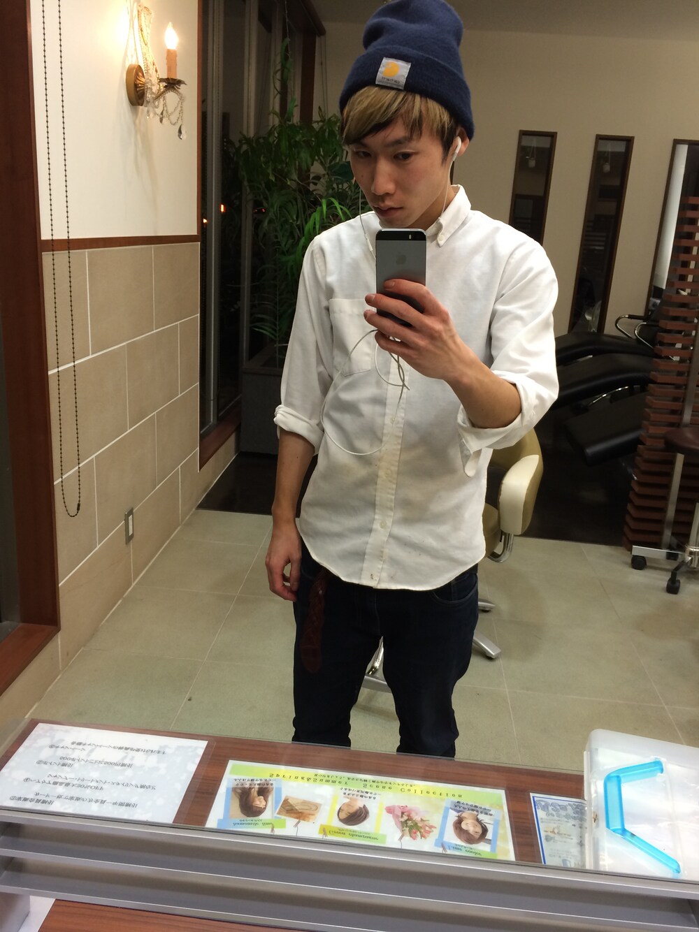 ブルー系のニットキャップ/ビーニーを着用したメンズの春コーディネートの1枚目の写真