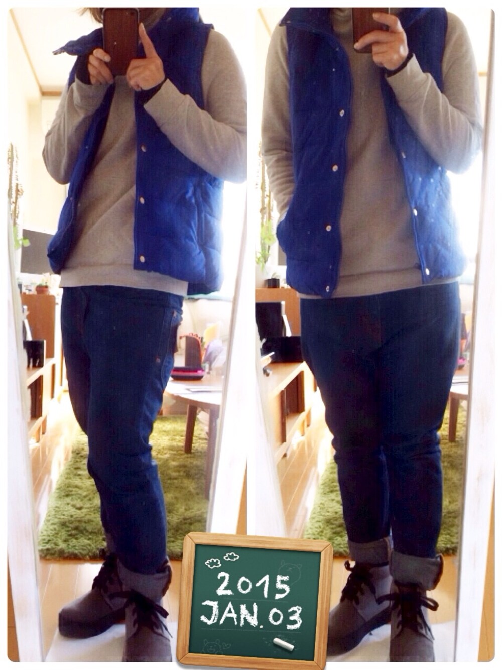 パーカーを活かしたくてダウンベスト購入。実はパーカー、10年前の物。まだまだ現役
