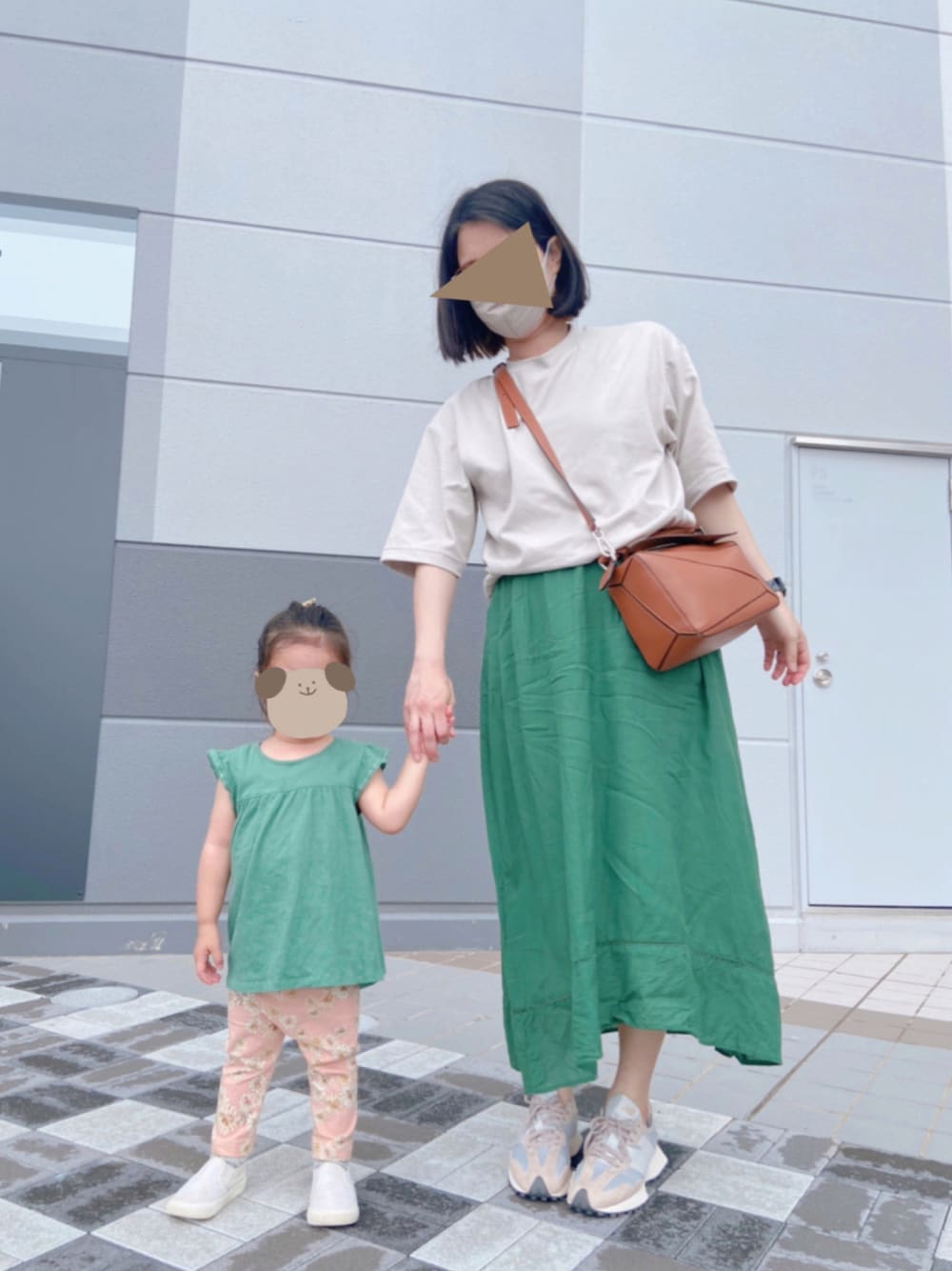 先日のUNIQLO感謝祭でたくさん買いました! エアリズムコットンオーバーサイズTはライトグレーがくすみ感あってよいです🙆🏻♀️ スカートは今回もニコアンドのウエストゴムのスカート☻ フロントとバックの丈の長さが違うので足首が見えて涼しげ🎋 ニューバランスのスニーカーは異素材の組み合わせで飽きないデザインです^ ^ そして子供服のポールアンドジョーシリーズが可愛すぎる♡⃛